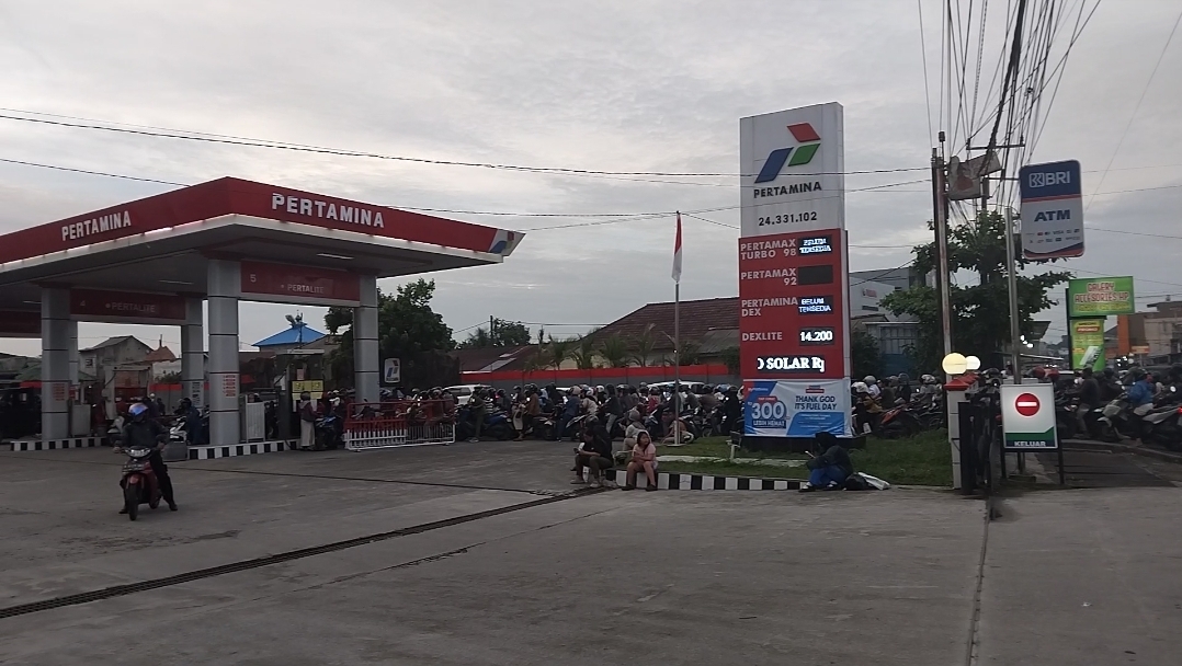 “Kami sudah mengantre selama 1 jam lebih”. Keluh salah satu pengendara yang sedang mengantri di SPBU
