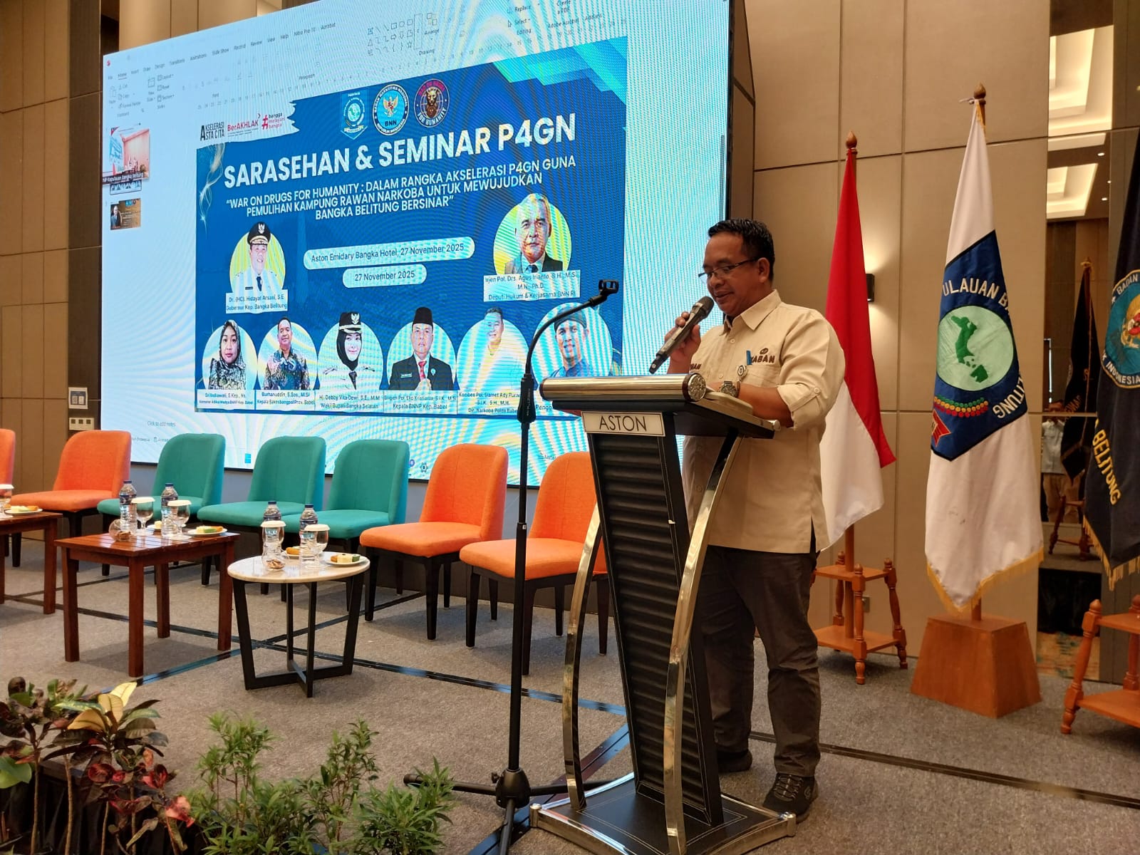 TopBabel.com-Pemerintah Provinsi Kepulauan Bangka Belitung (Babel) bersama Badan Narkotika Nasional Provinsi (BNNP) Babel menggelar Sarasehan dan Seminar Pencegahan, Pemberantasan, Penyalahgunaan dan Peredaran Gelap Narkotika (P4GN) bertema “War on Drugs for Humanity”, Kamis (27/11/2025) di Aston Emidary Bangka Hotel & Conference Center.