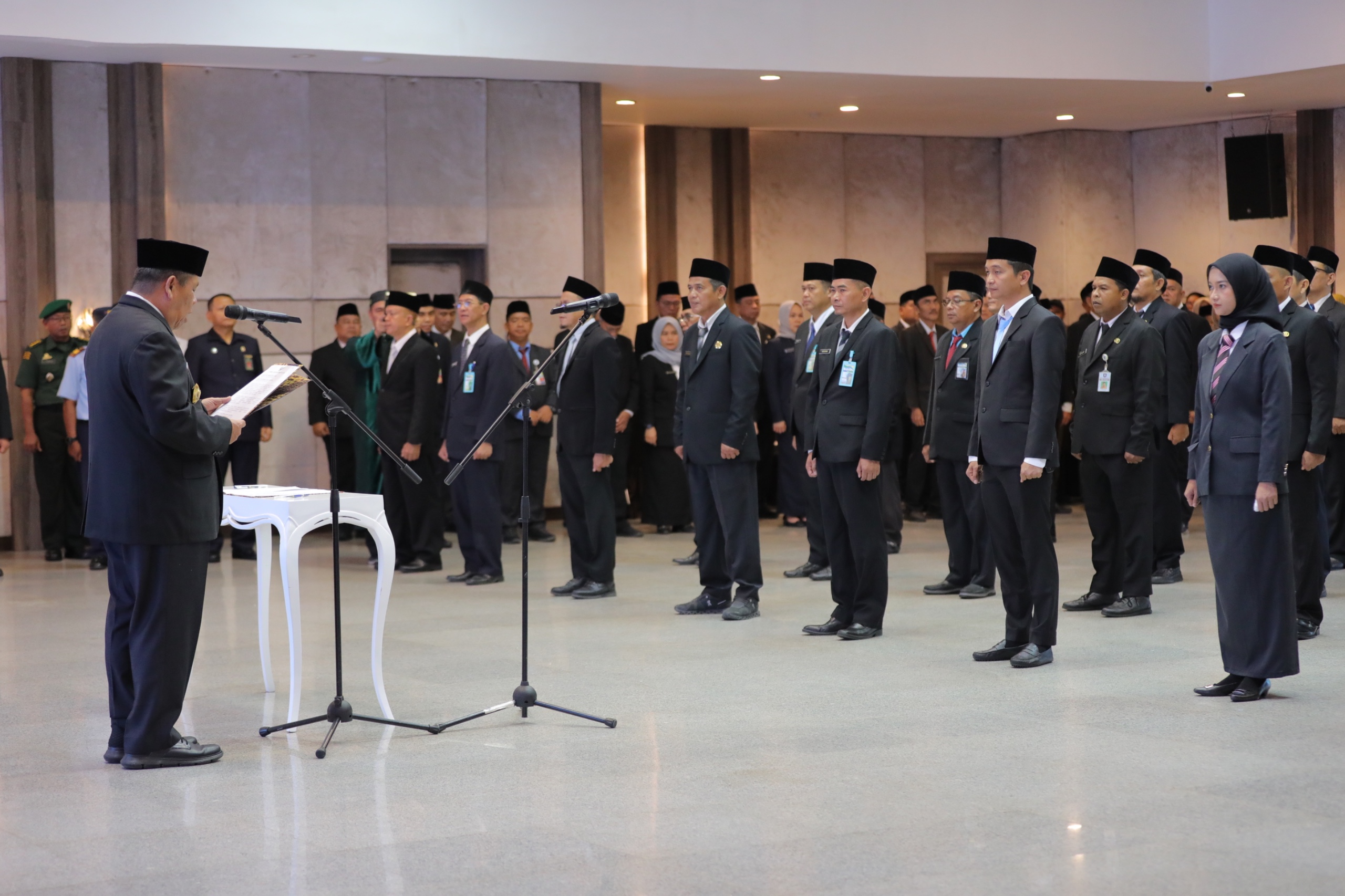 TopBabel.com-Gubernur Kepulauan Bangka Belitung (Babel) Hidayat Arsani, melantik 42 Aparatur Sipil Negara (ASN), terdiri dari 36 orang jabatan administrator dan 6 orang dengan jabatan kepala sekolah, di Ruang Pasir Padi, Kantor Gubernur Babel, Senin (27/10/2025).
